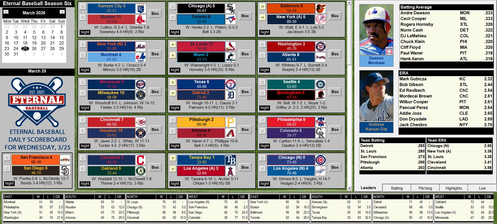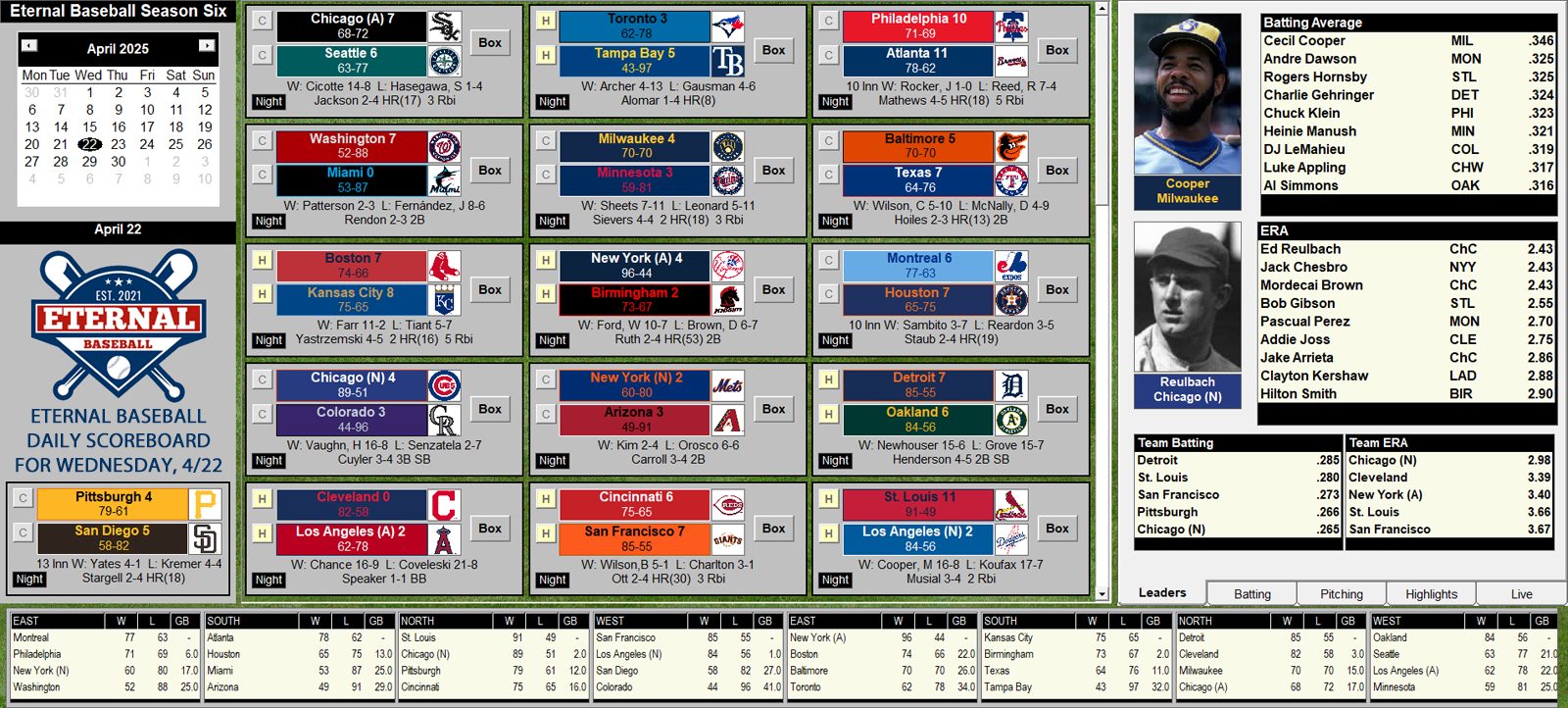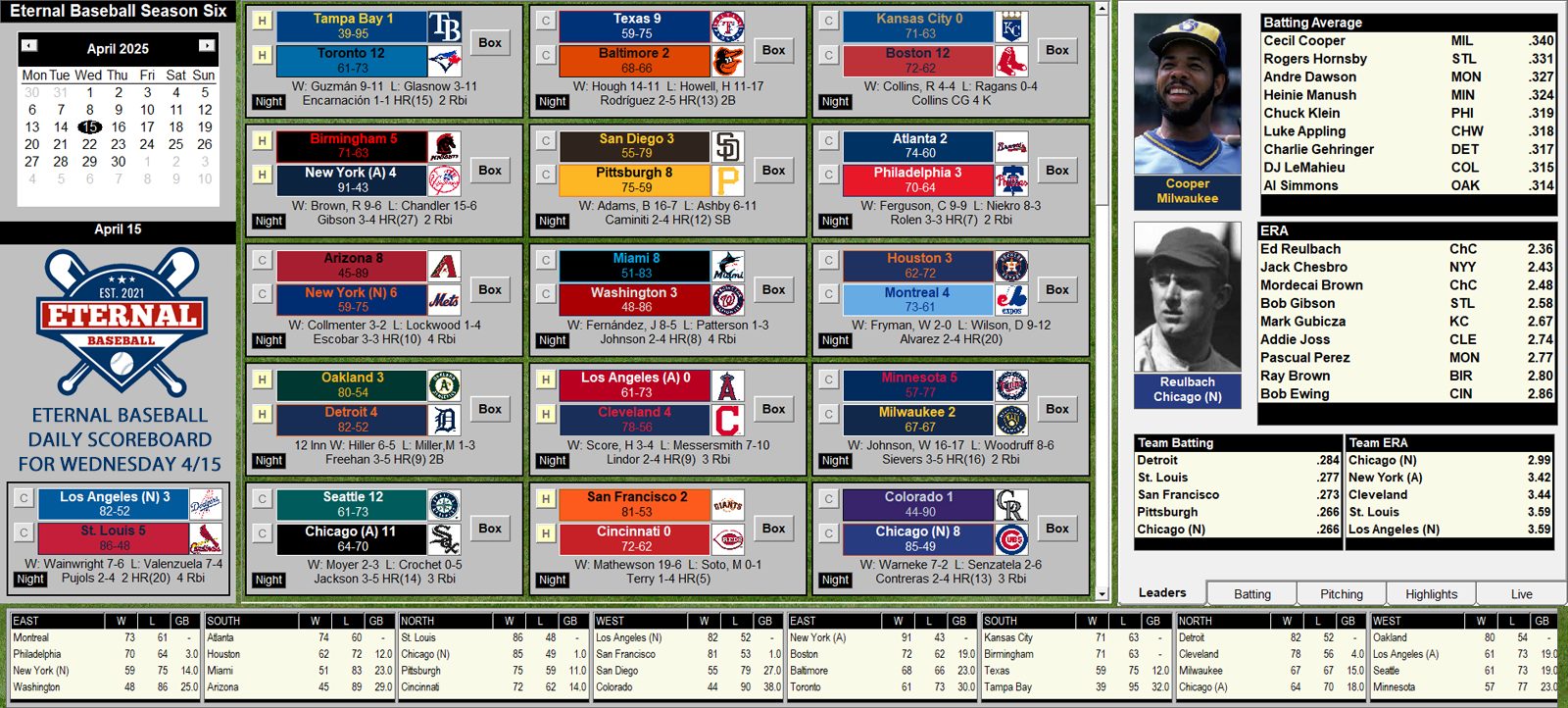 On any given day in Eternal Baseball, you could see: