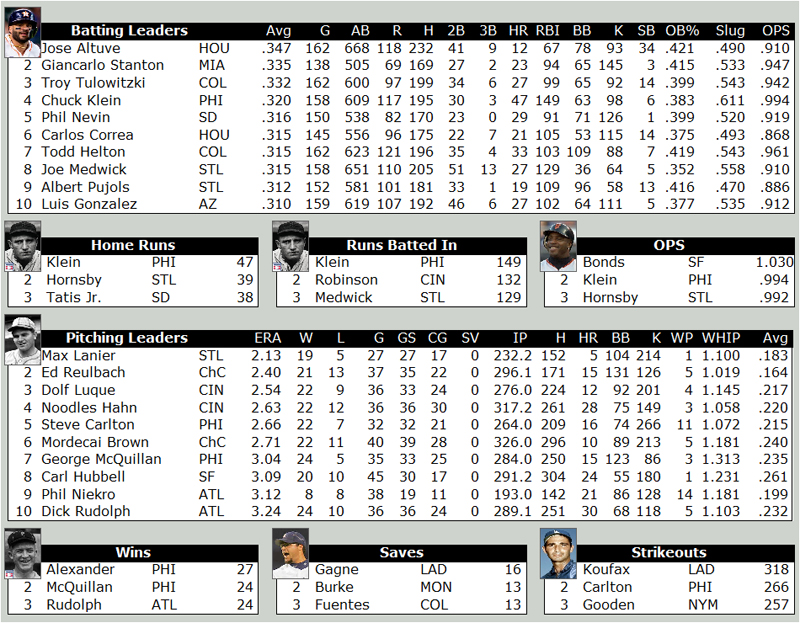 Sign up for the weekly, world famous Eternal Baseball Newsletter for updates on the standings, historic player and team performances and interesting statistical factoids from our current season.
